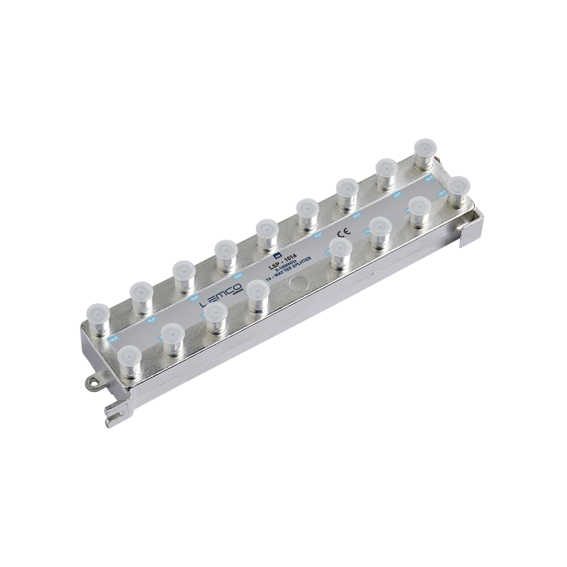 LSP-1016 to 16‑portowy rozgałęźnik telewizyjny (5–1000 MHz) z doskonałą izolacją i niskim tłumieniem, obudowa z odlewu cynkowego, złączami F żeńskimi.