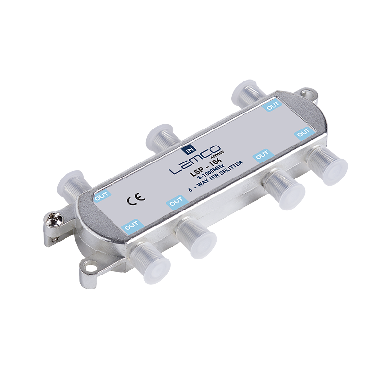 LSP-106 to 6‑wyjściowy rozgałęźnik TV (splitter) 5–1000 MHz z przepustem DC, niskimi stratami wtrąceniowymi, wysoką izolacją i wytrzymałą obudową odlewaną.